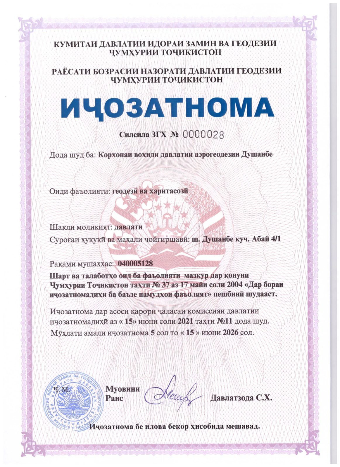земельному управлению и геодезии